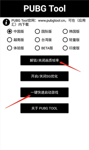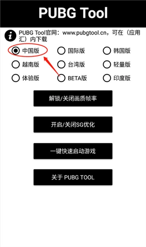 2、进入pubgtool主界面,选择对应的PUBG版本(中国版对应的是绝地求生)。