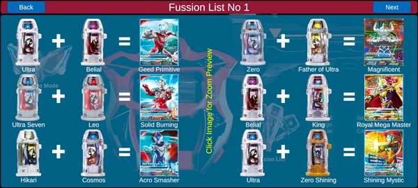 4、点击Fussion List,可以查看不同胶囊能合成什么奥特曼
