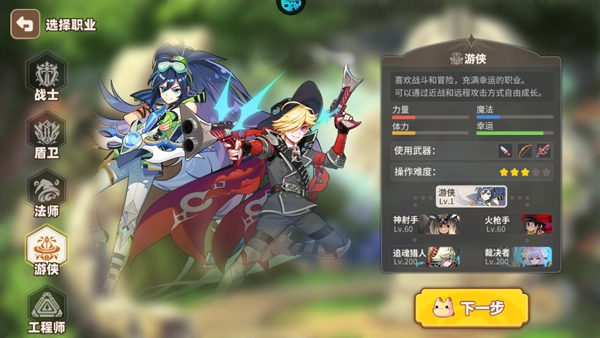 钟情于战斗与冒险,自带幸运属性的职业,能够凭借近战与远程两种攻击方式实现自由发展。