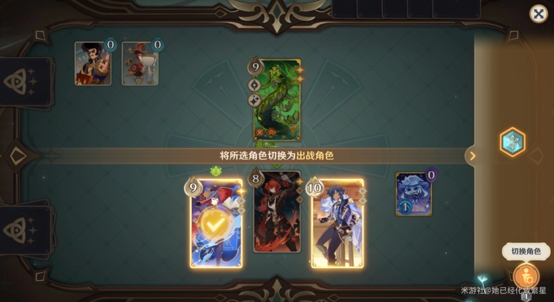 3、费用方面的考量:切换角色需要消耗行动点,在前期,应优先将保留费用用于铺场。到了中后期,则依据实际战况,精确地进行角色切换,以补充伤害或者承担伤害。