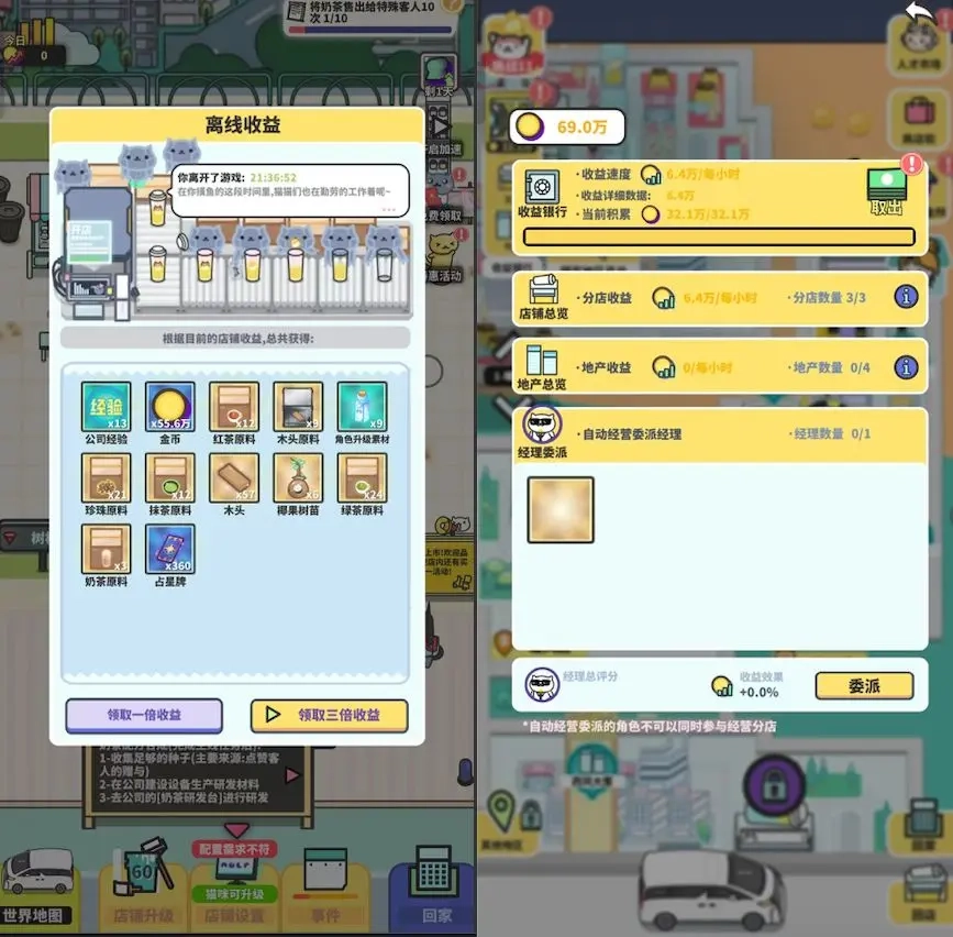 游戏中还设有 “猫逗音”、“猫喂博” 等充满趣味的网络平台宣传系统,助力你的奶茶品牌迅速崛起,成为城市瞩目的焦点。感兴趣的玩家,别再犹豫,快来下载体验吧!1、新手指南