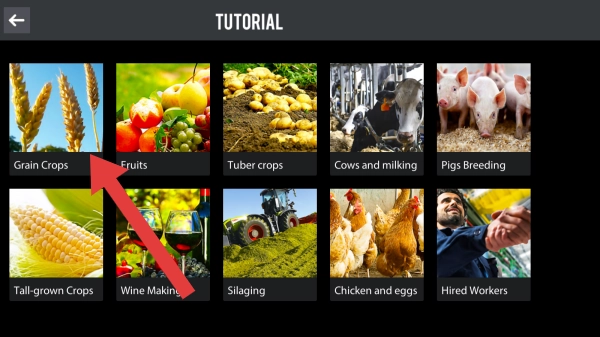 2、呈现出“GrainCrops(粮食作物)”“Fruits(水果)”“Tubercrops(块茎作物)”等各类与农业生产相关的教程分类,旨在引导玩家学习不同的农场经营内容。