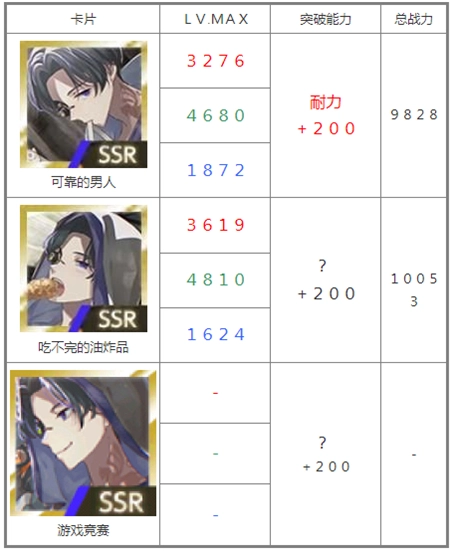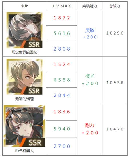 突破能力:数值会额外加成至「同角色」的所有卡牌(R/SR/SSR)
