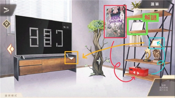 ⑧ 前往「左房间」的光碟机处进行解谜,留意柜子上的股市表、桌上萤光棒的长度以及条纹的数量。