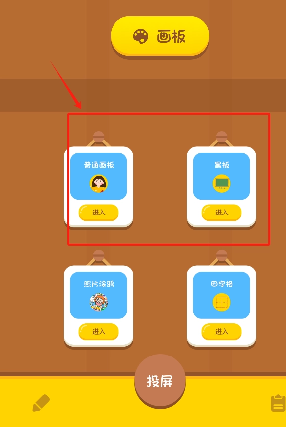 1、点黄色画板按钮,或选左上角普通画板框,进入基础绘画界面开始涂色。
