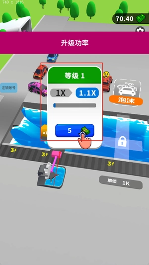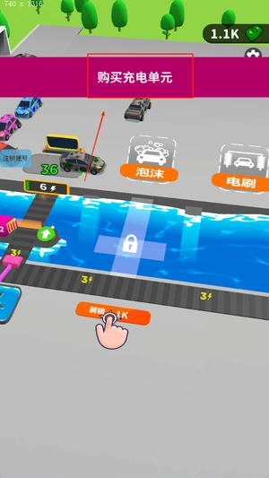 2、游戏设有建设与升级按钮,界面下方显示当前资金与任务进度。