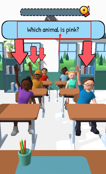 3、查看蓝色牌子上的问题“Which animal is pink”,请举手的学生进行回答。