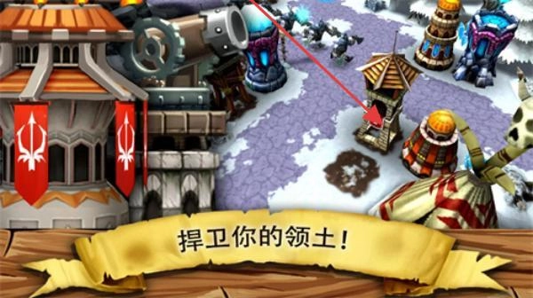 1、进入游戏,在领地建造防御塔,依据地形布局,践行【捍卫你的领土!】,抵御敌人入侵。