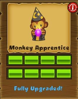 (增加射程)→(增加射程且能击中迷彩气球)→(射速下降但可以攻击18个气球)→(增加对陶瓷气球的攻击,可以攻击铁质气球)