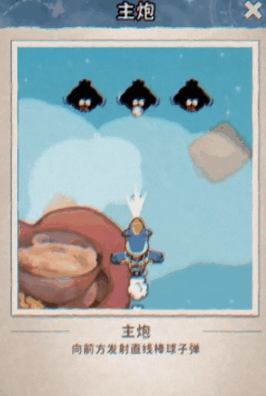 主炮:向前方发射笔直的棒球子弹,提供稳定可靠的直线火力输出。