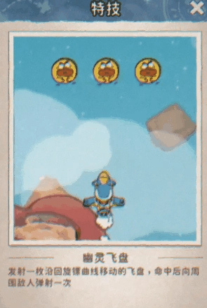 特技:【幽灵飞盘】-发射一枚沿回旋镖曲线移动的飞盘,命中目标后会向周围的敌人进行一次弹射。火力覆盖,精准打击!