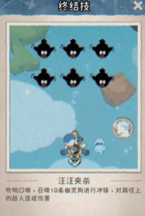 终结技:【汪汪夹杀】- 查理吹响口哨,召唤10条幽灵狗进行冲锋,对路径上的敌人造成毁灭性伤害!幽灵狗群出动,无差别夹击,让敌人无处可逃!