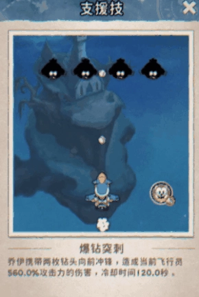 羁绊支援(乔伊):【爆钻突刺】——乔伊驱使双钻头发起爆发式冲刺,对前方路径上的敌人予以基于当前飞行员攻击力的超高额毁灭性打击!爆钻强袭,刹那间冲破防线!