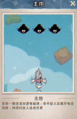 主炮: 逐渐加速的电磁弹,命中后生成持续伤害的电击陷阱,考验飞行员命中率的时候到了!