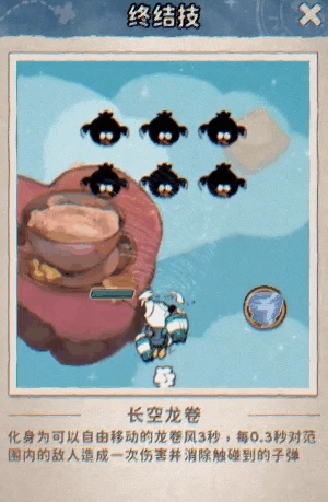 终结技:【长空龙卷】 - 化身为可自由移动的龙卷风,持续对范围敌人造成伤害并消除触碰到的子弹!