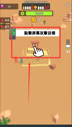 1、基础玩法是通过滑动屏幕瞄准目标,点击发射武器摧毁建筑,根据破坏程度获得相应分数和奖励。