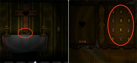 10、到小丑房后面的房间将红宝石放在右侧浮雕的眼睛中,接着进入最里面的房间根据墓碑(符号)以及纸条(数字)上的提示打开铁门。