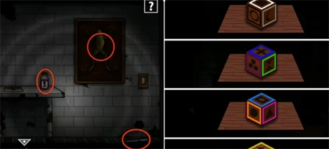 4、走进实验室,取走毒药、死青蛙以及螺丝刀。之后,依据别墅各个场景角落里的木方方,同时参照木门上的颜色提示,找出对应的符号并打开相关物品。紧接着,按照书架右上角书排所给出的提示(包含颜色与高低信息),对右侧的面具进行调整,从而获取第二张画像碎片。