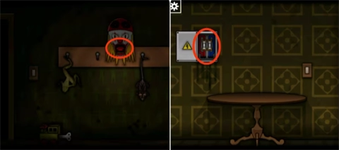 8、将老鼠和青蛙根据红色书籍里的提示摆放在对应的位置拿到红宝石,接着来到最初的地点用螺丝刀打开电箱放入保险丝激活电源。