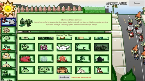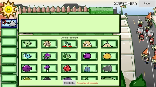 5、玩法承袭了传统的植物大战僵尸模式,玩家一开始便拥有50阳光,需借助阳光来种植植物,以抵御来袭的僵尸。