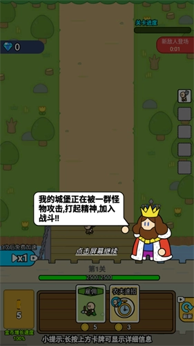 3、游戏右上方会显示当前的关卡进度以及下一波敌人的出现时间,让玩家可以做足准备;