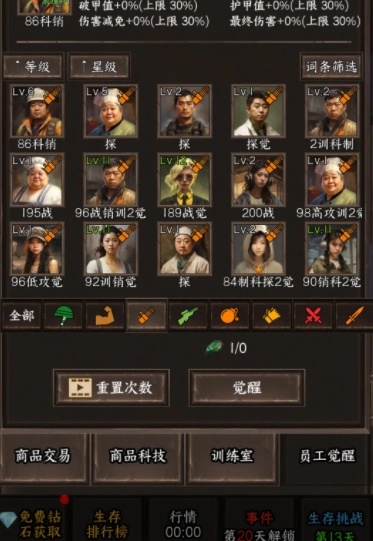 1、打造专属的队伍在末日展开生存战斗,不断的扩充队伍来抵御怪物的进攻。