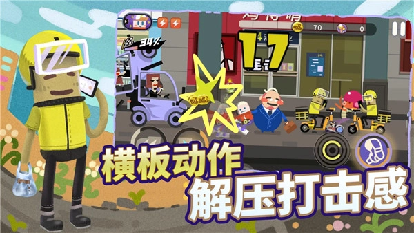 1、纯2D美术效果,画面带有一种美式嘻哈风,色彩很丰富,也有一种涂鸦的感觉。