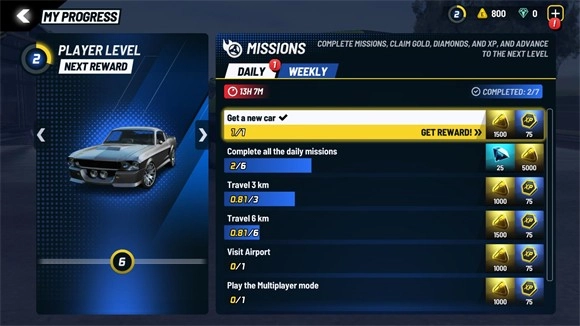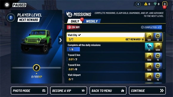 4、轻点右上角的暂停按钮,就能查看待完成的任务。完成每日任务以及每周任务,均可获取奖励。