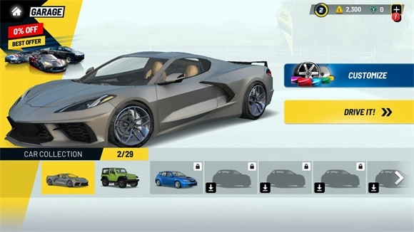 1、玩家可以驾驶不通过的赛车,感受刺激的驾驶,奖励丰富。