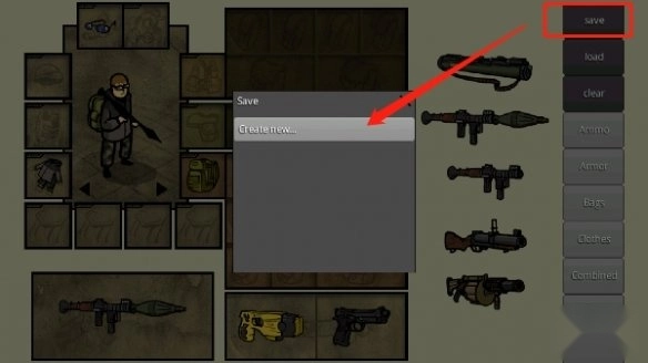 4、完成DIY角色后,把屏幕往上滑动到最顶端,找到“save”选项,点击里面的“create new”,就能快速保存当下的设置。