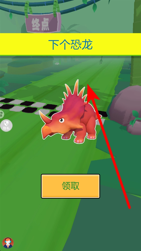 3、当成功抵达终点,会弹出新恐龙的解锁提示,点击领取按钮,就能解锁新恐龙,之后便可用新恐龙参与更多关卡的竞速和冒险。