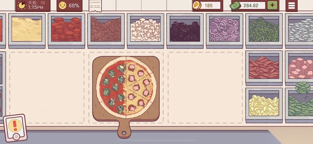 可口的比萨是一款店铺经营类游戏。在游戏中,玩家能够模拟经营属于自己的披萨店。游戏具备菜品设计功能,玩家可收集各类食材来研发新的披萨,像在游戏里制作芝士披萨、意大利辣肠披萨、猪肉粒披萨等。此外,玩家还能制作大饼、面包以及其他类型的食物。游戏里有众多客户,每位客户进店时头顶都会显示对话信息,玩家需依据客户要求制作不同食物,如此既能更好地盈利,又能让客户满意。同时,玩家在游戏中还可以管理自己的菜园,种植不同的农作物,收获的农作物可用于研究新菜品,有需要就这么做。