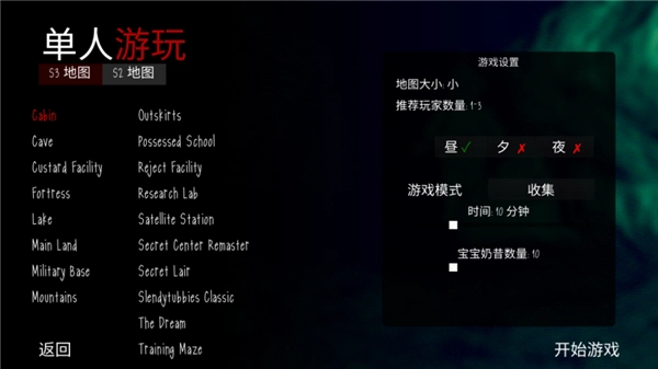 4、完成选择后,点击“开始游戏”。小编在此选择的是收集模式,在该模式下,玩家需在十分钟内找到十个奶昔。