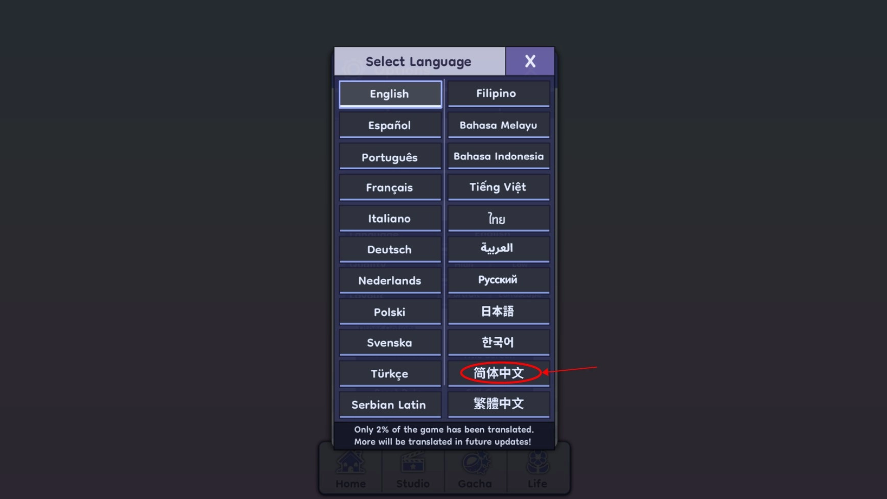 3. 于“language”页面,选取简体中文。