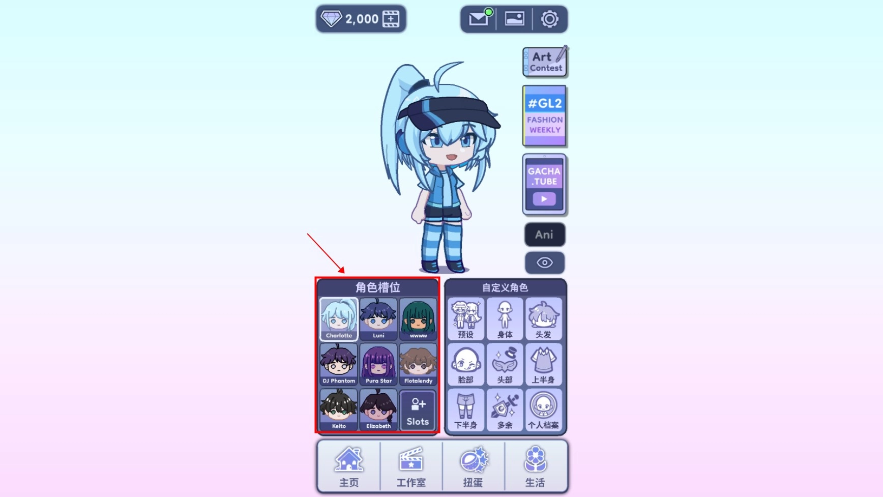 2. 在人物左侧的格子里,挑选自己心仪的角色。