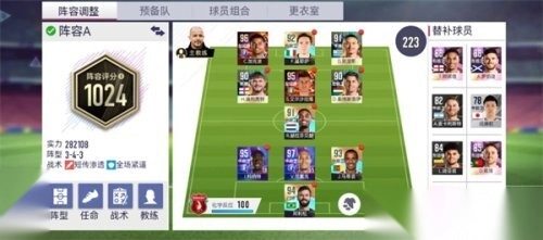 2. 化学是战力的基础,要尽可能确保达到100化学。基于这两点,前期游戏节奏必定以合卡为重点。然而,合卡存在随机性,而且球员卡变化迅速,要是采用11人的纯血队套,球员很难上场比赛。合出来的卡无法上阵,就等同于浪费战力。因此,我在这里给各位朋友推荐一个前期百搭阵容,用8名90以下的球员卡搭配替补席,凑出100化学的阵容,剩下三个主力位置可以随意安排卡片,以此实现前期战力的最大化。