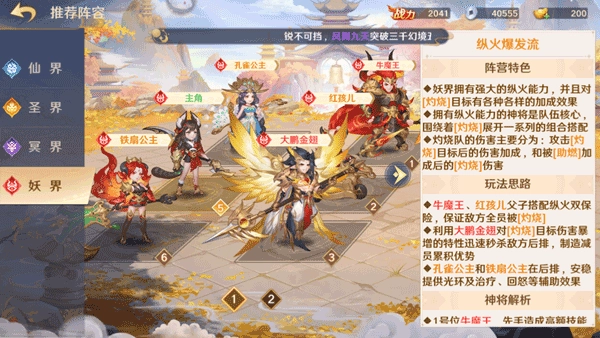 牛魔王与红孩儿这对父子携手合作,组成纵火的双保险阵容,能够确保敌方全体成员都陷入[灼烧]状态。