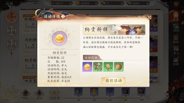 玩法入口:活动-纳贡祈祥