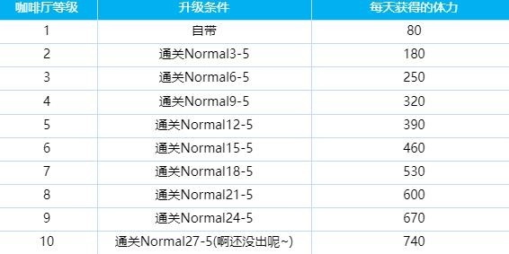 1在游戏里,体力至关重要,它是获取所有资源的源头。通过特定关卡,能提高每日获取的体力。角色达到40级时,尽量将关卡推进到12 - 5;55级则应推进至18 - 5 。推图时有一种策略,不必强求一次性获得满星。可以先在第一遍时,满足通关次数要求,第二次再考虑达成三星。毕竟在游戏前期,提升咖啡厅等级才是重中之重。