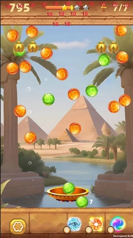 2. 玩家需要进行精准射击,通过匹配颜色来消除泡泡,进而探寻隐藏的宝藏。