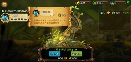 2、每次浇水需消耗30滴珍露与1800片树叶,浇水次数总计20次,时间限定为一个月。珍露需通过完成关卡获取,每关的任务各异,获得的珍露数量也不一样。