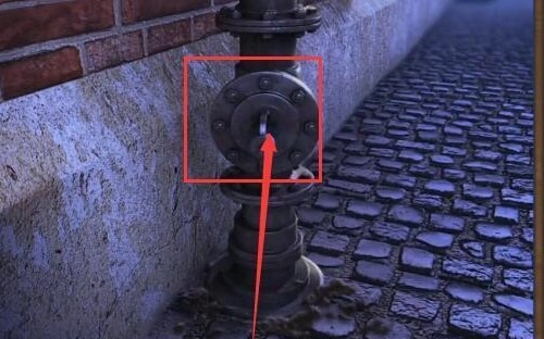 需先把阀门装在左边房子拐角位置的水管上。