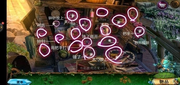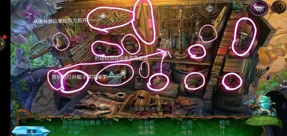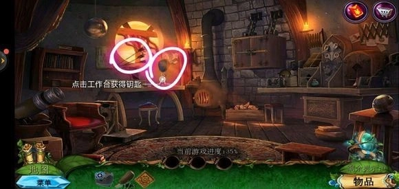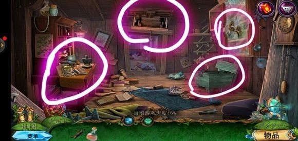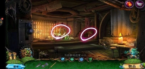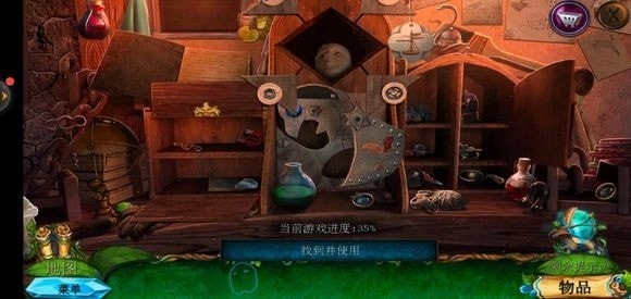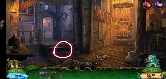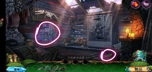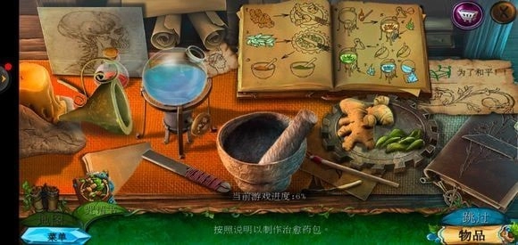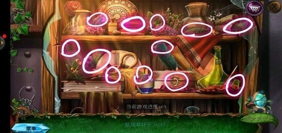走进房子里面,点击绿色的桌子可获取药水,从玻璃壁橱处拿到清洁布,完成小游戏就能得到鼠尾草叶子。