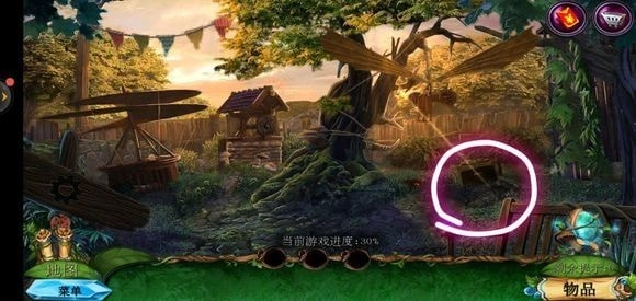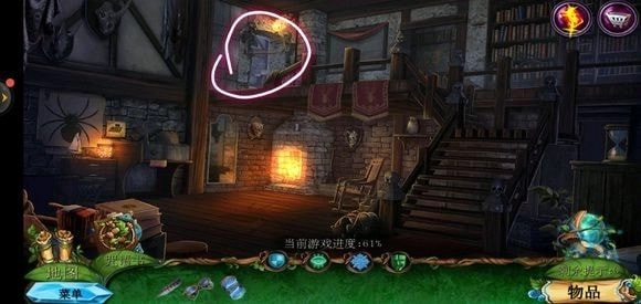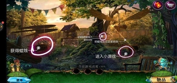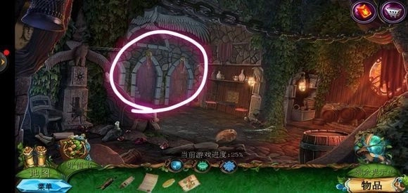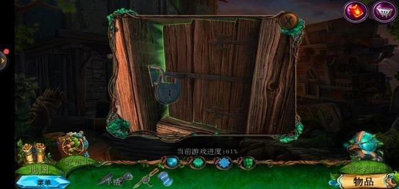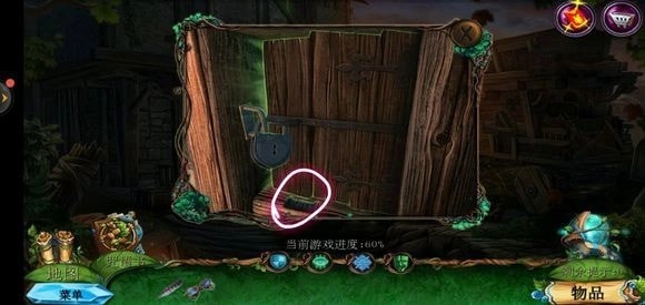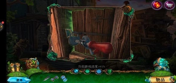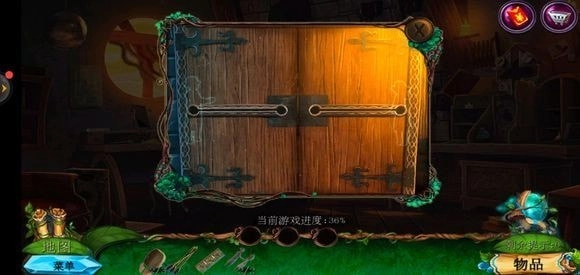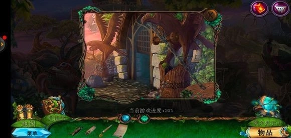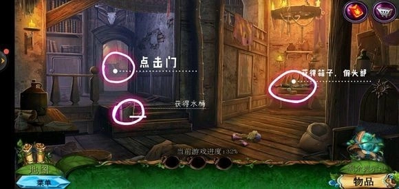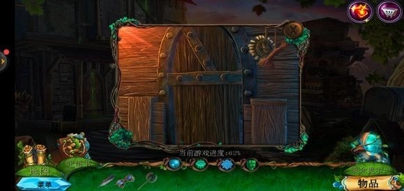走进那棵巨树,轻点门,接着用海绵把第一扇门的污渍擦拭掉,随后拿出地图。