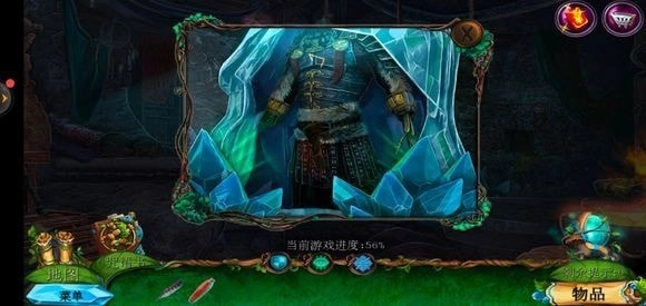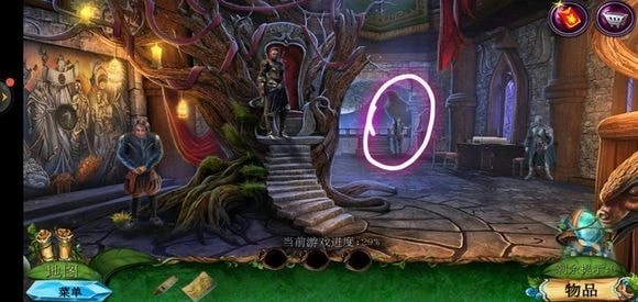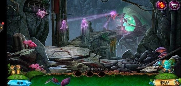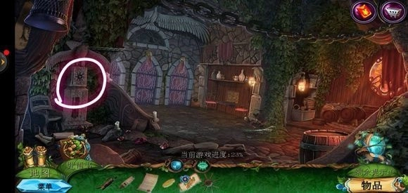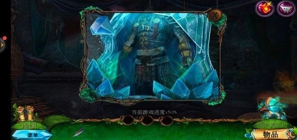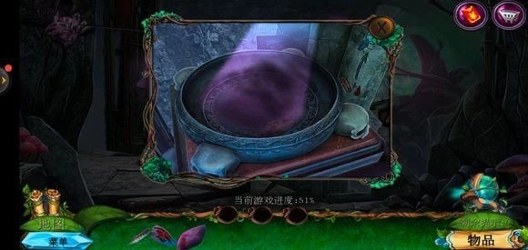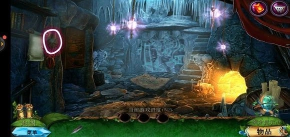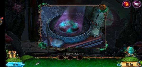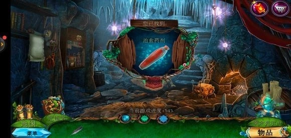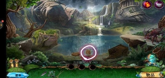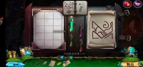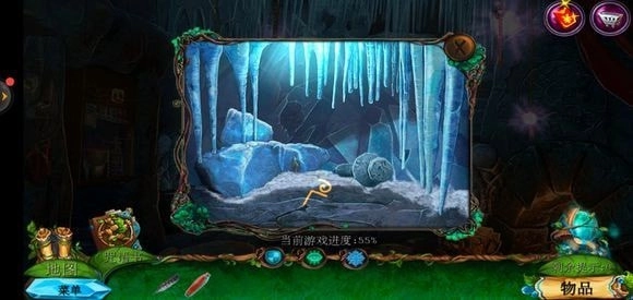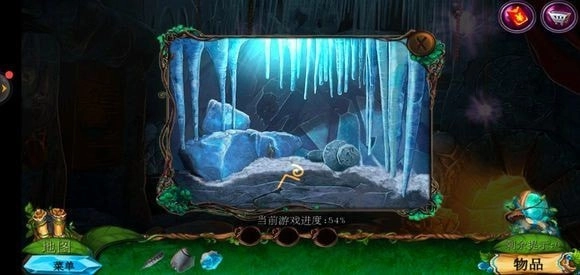 轻点咒语书,把蓝色药剂放置上去,进而学习冰封咒语。随后返回巨树的左侧,运用冰封咒语来获取地图。