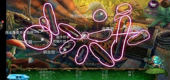 轻点道具里的花园剪子,把剪下的软管套到花园剪子之上。