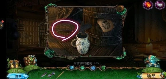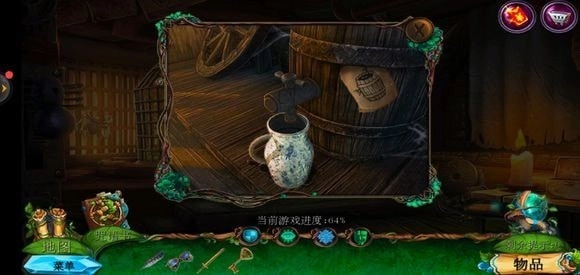 走进特殊的房间,将阀门放置在酒桶之上,获取焦油罐子,把金钥匙插入锁中,然后从右边进入小游戏。