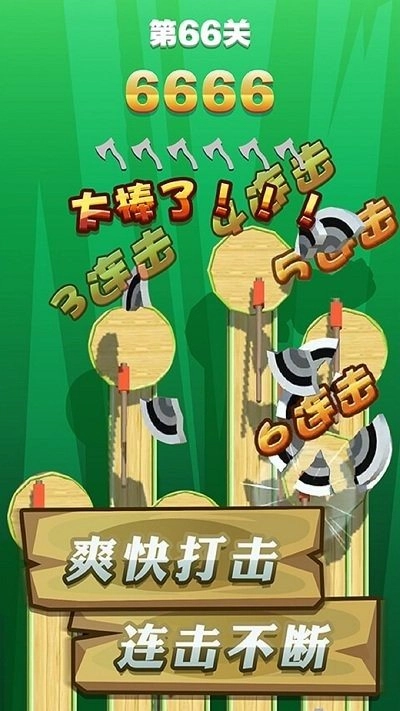 3. 玩法简便,操控飞斧投向目标,若成功击中目标,就能获取高分并顺利通关。