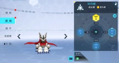 在数码兽的潜能界面中,能够利用潜能果实来提升数码兽的四维属性。潜能果实获取的主要途径为扫荡果实守卫(网域主线)以及神秘商店。
