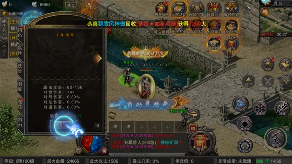 要是私服开启符文系统,镶嵌“玄龟符石”(可增加3点道术)就能达成属性突破。